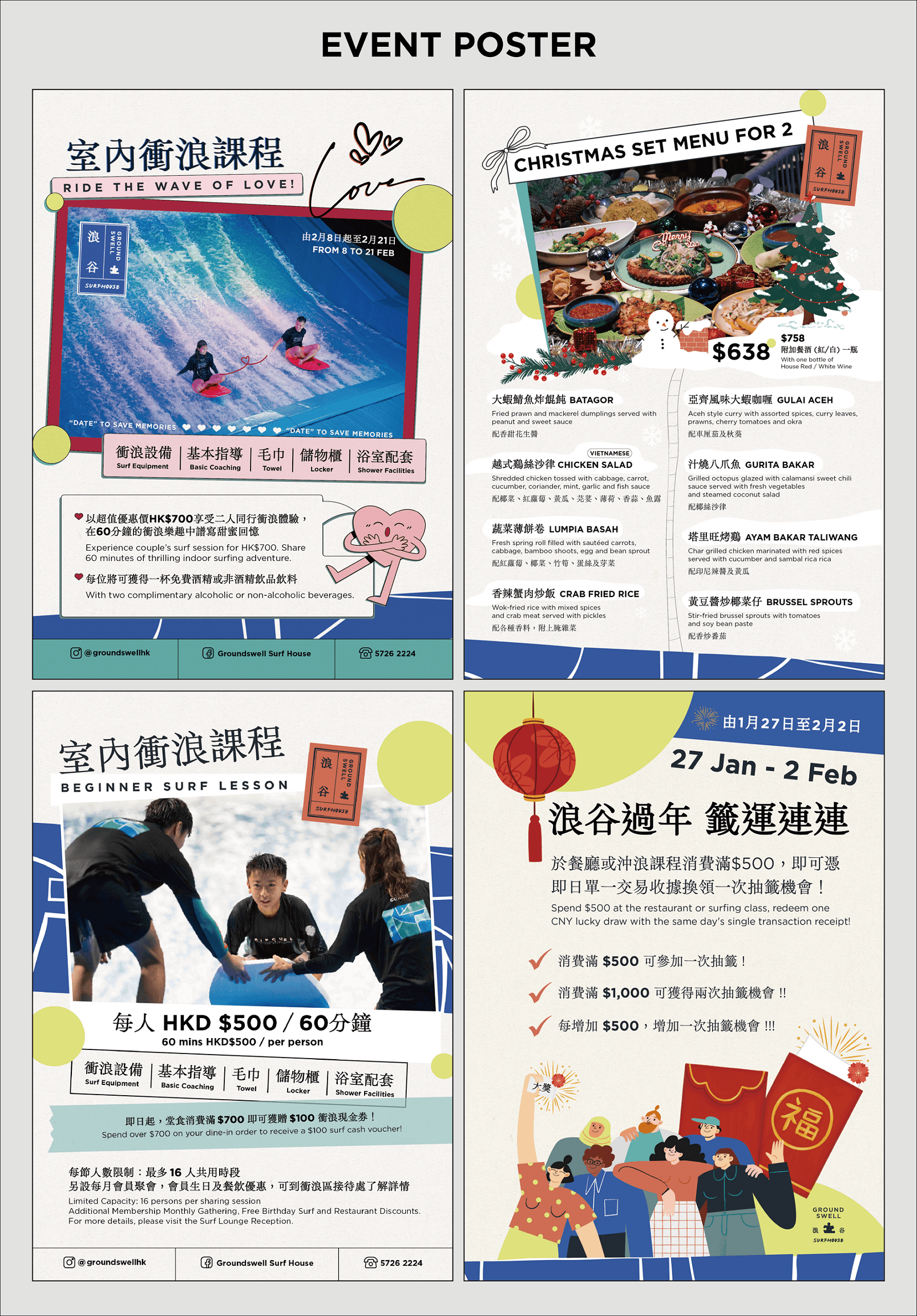 Groundswell is not just an indoor surfing space; it is dedicated to creating unique experiences that bring the thrill of surfing beyond the constraints of location or season, transforming it into an activity that can be enjoyed anytime, anywhere. With an on-site restaurant, it offers the perfect fusion of surfing and gastronomy, sparking the joy of life through waves and flavors alike.